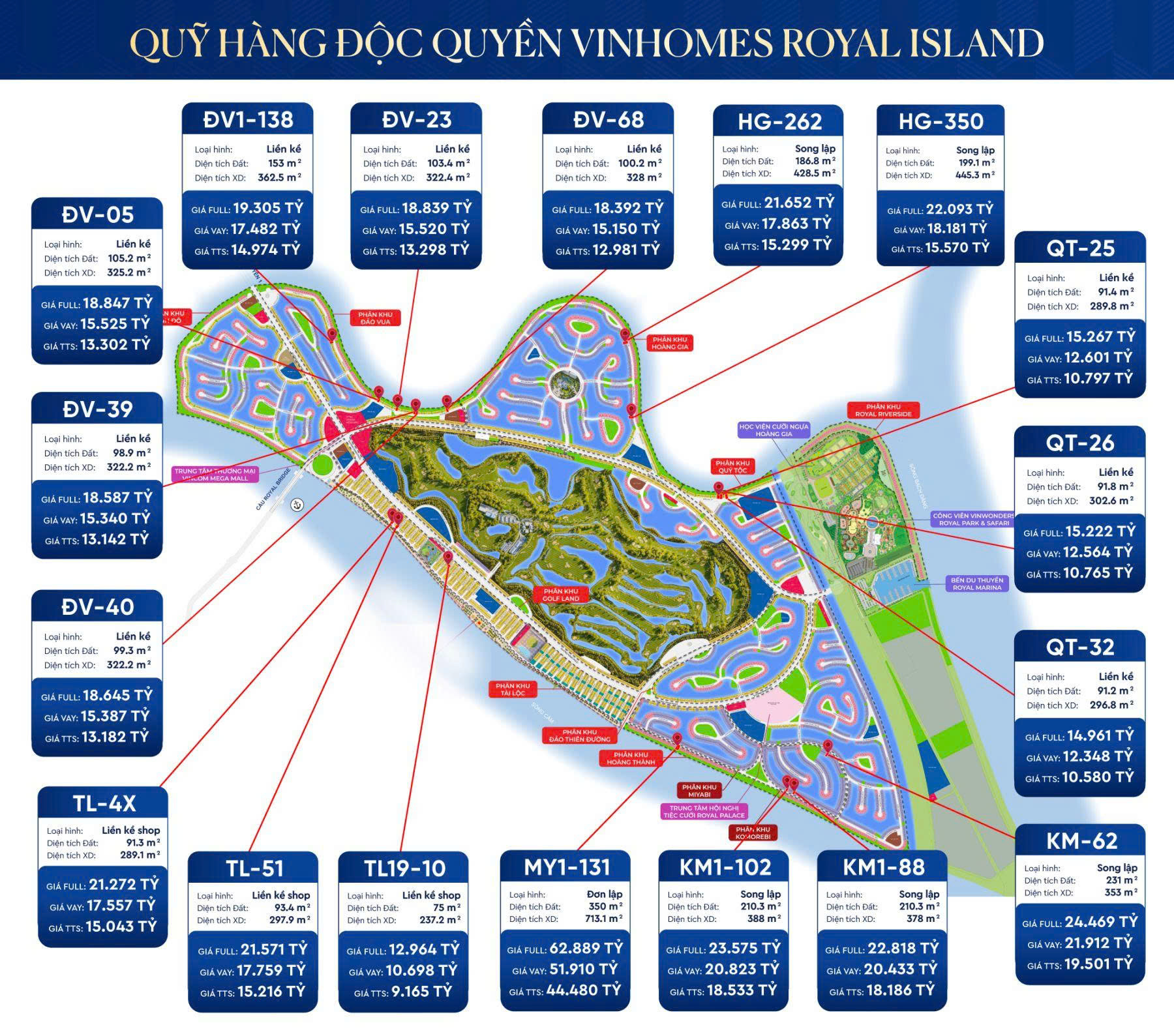 Vinhomes Royal Island là dự án lớn nhất khu vực, với những tiện ích đạt đẳng cấp quốc tế với đa dạng sản phẩm cao cấp gồm: Nhà Biệt thự, Nhà liền kề, Nhà phố Shophouse và vô vàn các tiện ích cao cấp và quy mô khủng. Với mức giá bán và chính sách vô cùng ưu đãi & linh hoạt luôn tạo điều kiện để nhiều đối tượng khách hàng có nguồn tài chính phù hợp sở hữu. Cùng chúng tôi điểm qua mức Gía bán điển hình của các sản phẩm tại dự án: