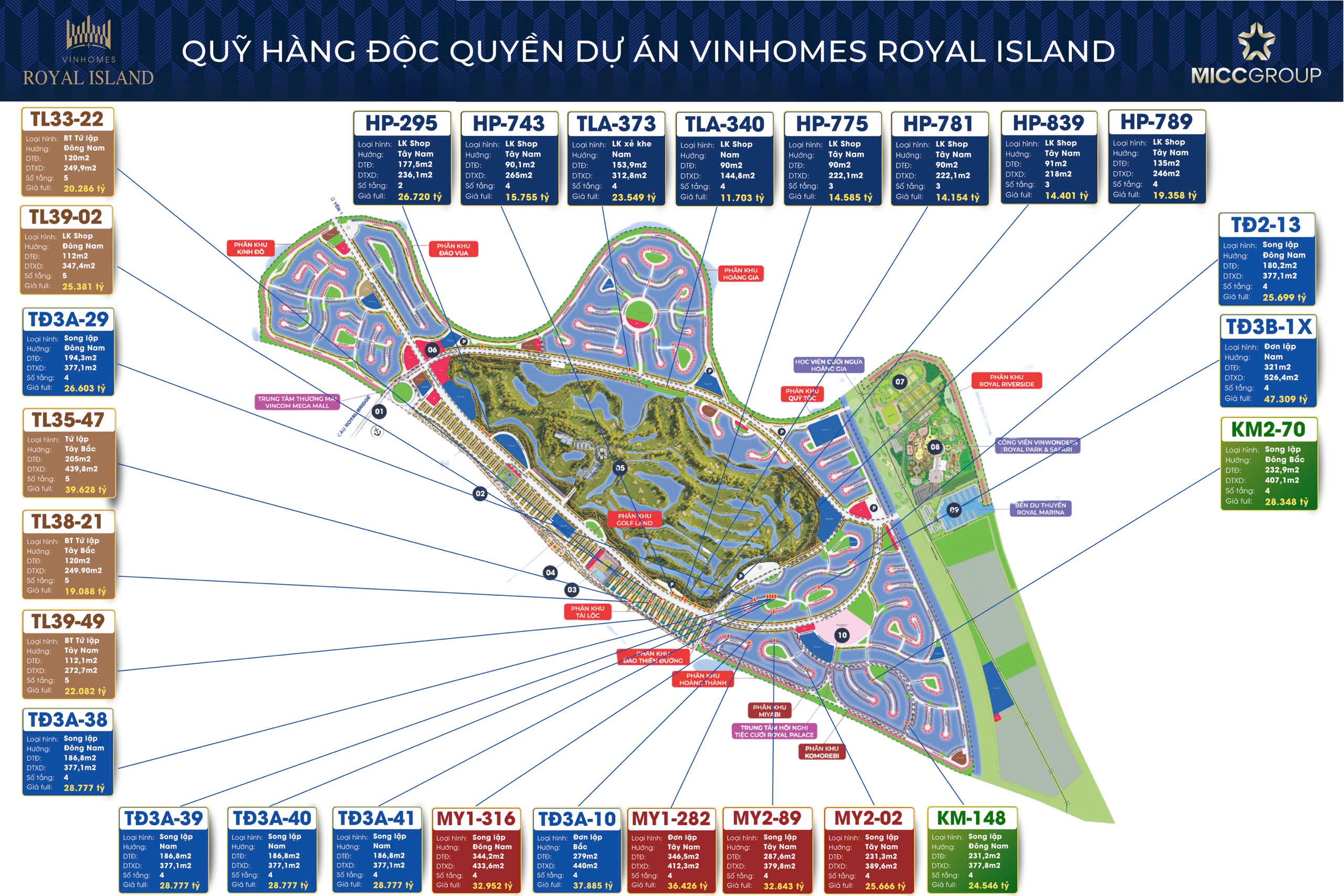 Tổng Mặt bằng tiện ích các phân khu Thành Phố Đảo Hoàng Gia Vinhomes Royal Island