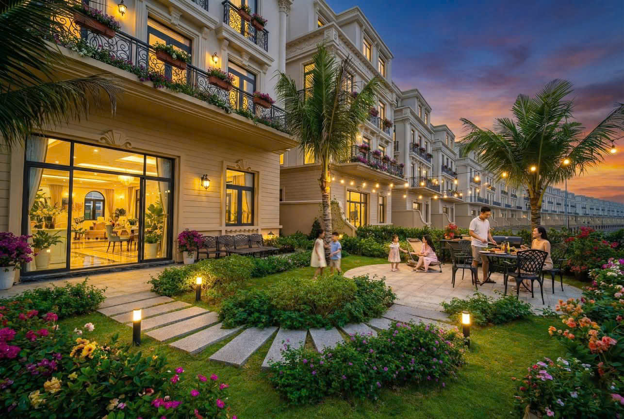 Mỗi căn Dinh thự tại đây có diện tích đất từ 270 m² đến 350m2 , cùng với diện tích sân vườn sau nhà trong khuôn viên 200m² trở lên hành lang sông độc quyền, tặng kèm khu vườn riêng biệt. Hãy tưởng tượng các buổi sáng bình yên trong khu vườn, đây sẽ là chốn an yên tuyệt vời.
