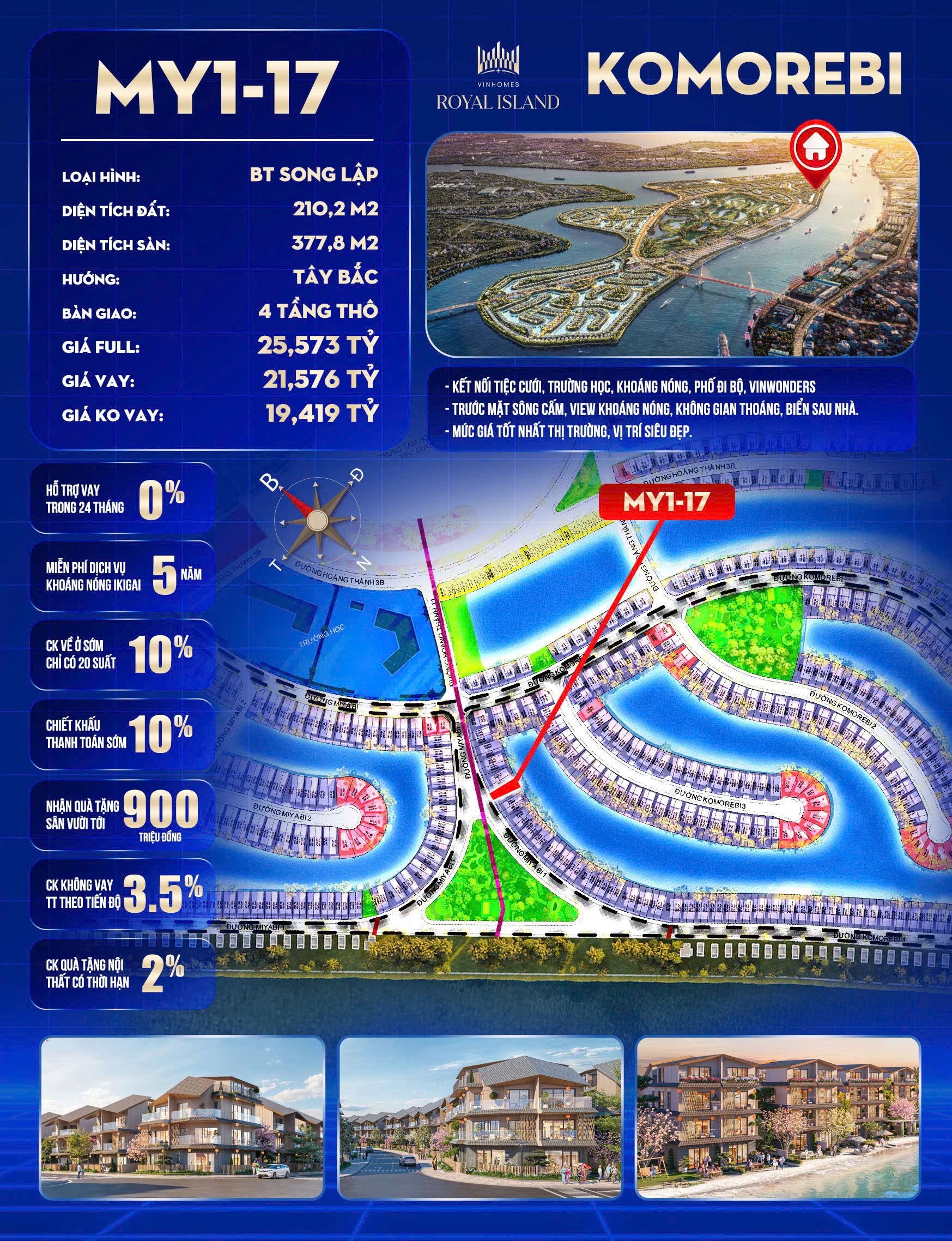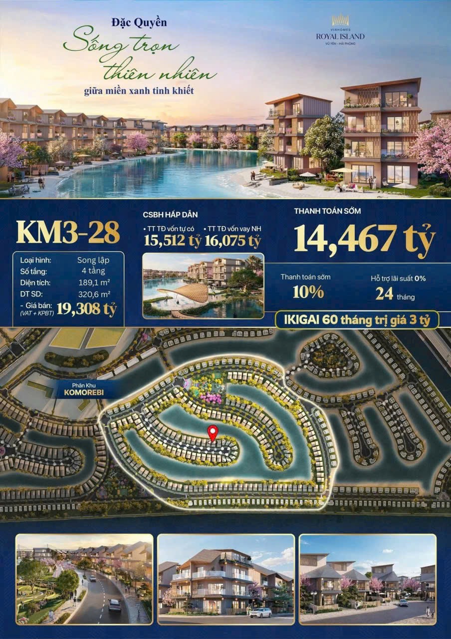 The Komorebi là phân khu thứ 2 tại dự án Vinhomes Royal Island Vũ Yên Hải Phòng được hợp tác phát triển bởi 2 tập đoàn Vingroup & Nomura Nhật Bản, nối tiếp phân khu The Miyabi. được thiết kế bởi chính kiến trúc sư đại tài Kengo Kuma, toàn bộ không gian cảnh quan và kiến trúc biệt thự đều mang đậm âm hưởng Nhật Bản. Đây là phong cách thiết kế lần đầu xuất hiện trong chuỗi đô thị mang thương hiệu “Vinhomes”, và đang nhận được sự quan tâm lớn bởi nét đẹp tinh tế, nghệ thuật đến từ kiểu dáng biệt thự và cách trang trí đậm chất Á Đông truyền thống.