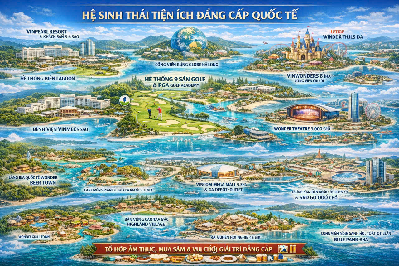 Khu phức hợp Vinhomes Hạ Long Xanh sẽ trở thành một trung tâm kinh tế - văn hóa - du lịch mới của cả tỉnh Quảng Ninh với những công trình siêu quy mô như sau: